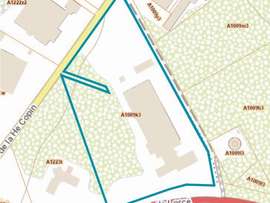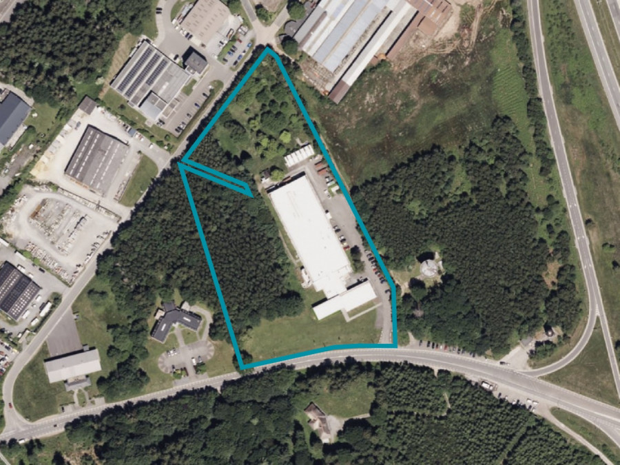 Bâtiment semi industriel de ± 4.558 m² sur un terrain de ± 22.688 m² situé à front de la rue de Lorcé, bordé du côté gauche et à l’arrière par la rue de la Hé Copin.