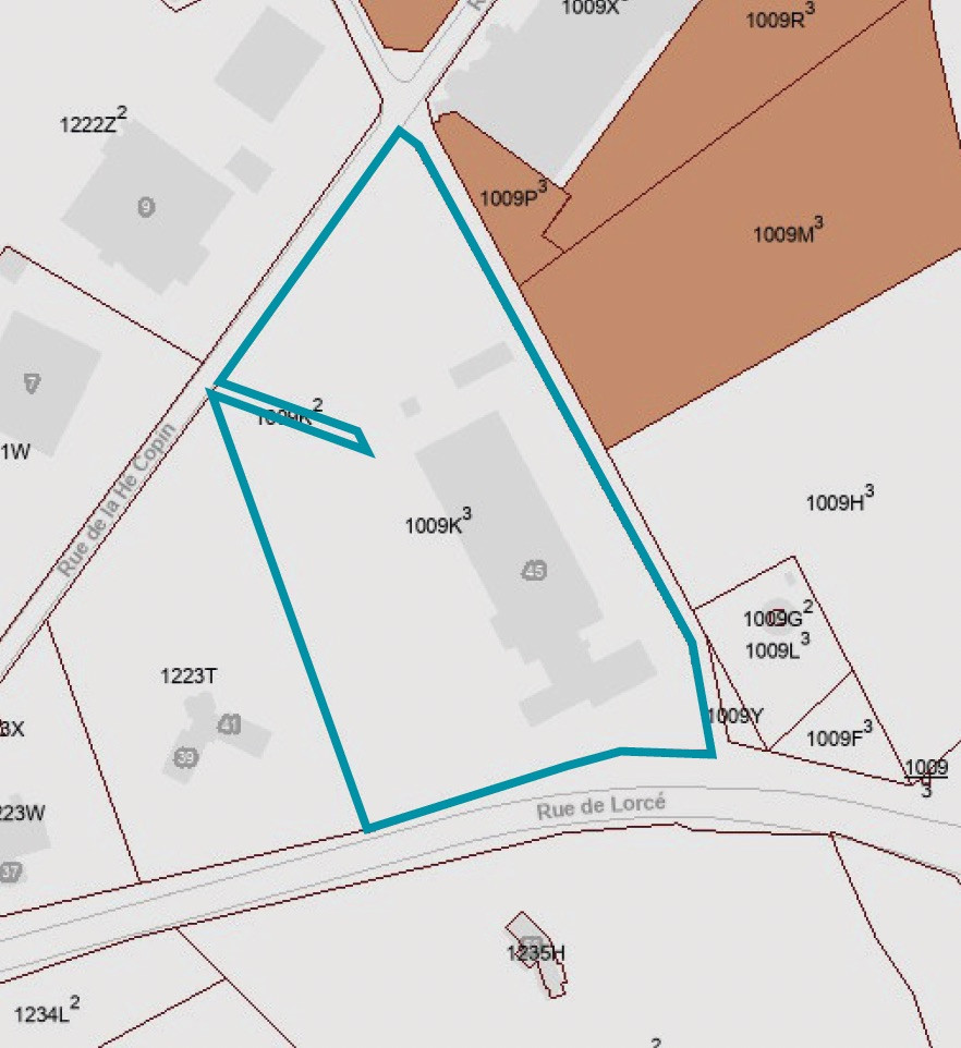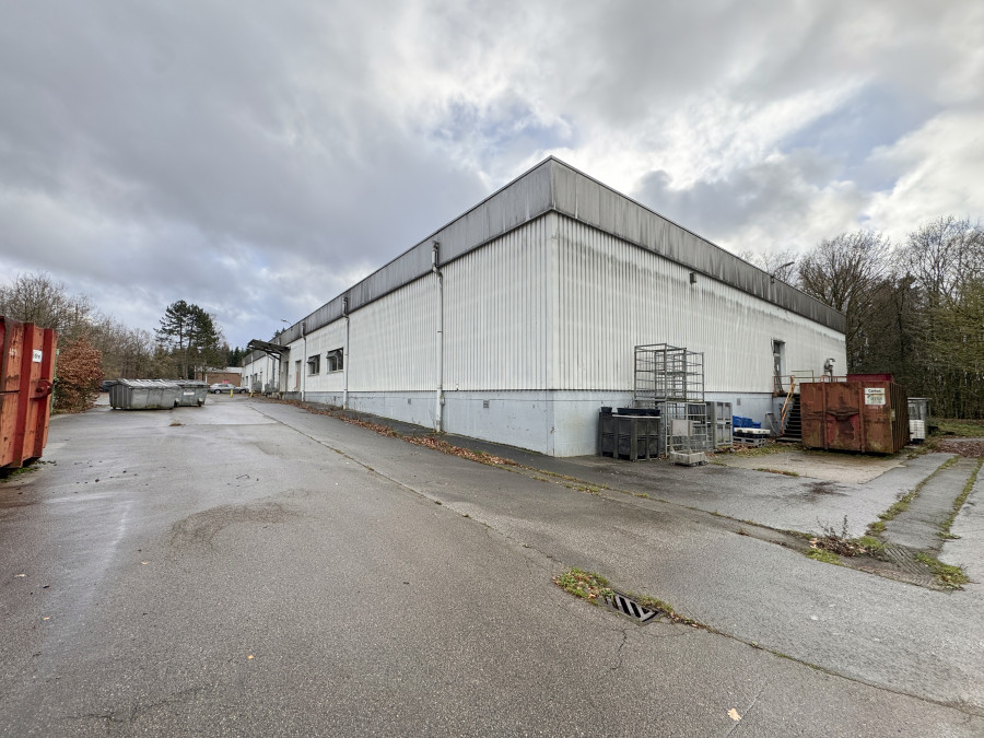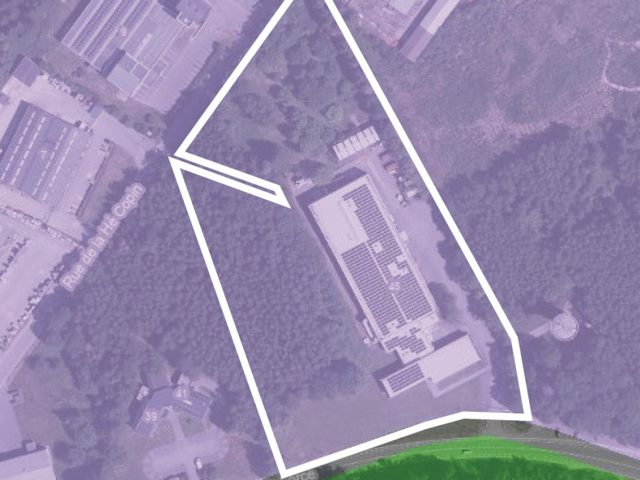 Bâtiment semi industriel de ± 4.558 m² sur un terrain de ± 22.688 m² situé à front de la rue de Lorcé, bordé du côté gauche et à l’arrière par la rue de la Hé Copin.